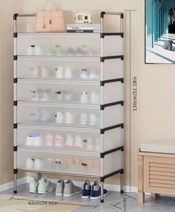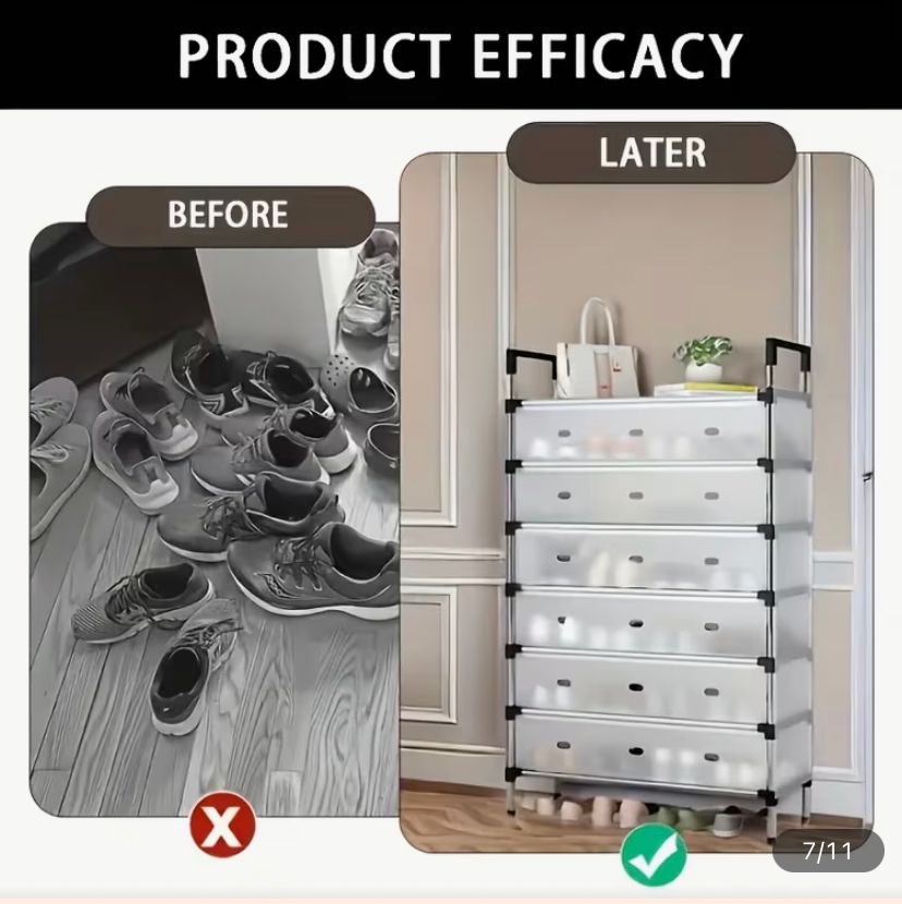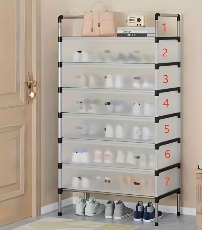 It is a simple structure for easy assembly, and a simple way to tidy up your home. This portable 7 tier shoe rack is affordable and durable. Use it anywhere you like. This shoes storage will always work great to keep you organized.